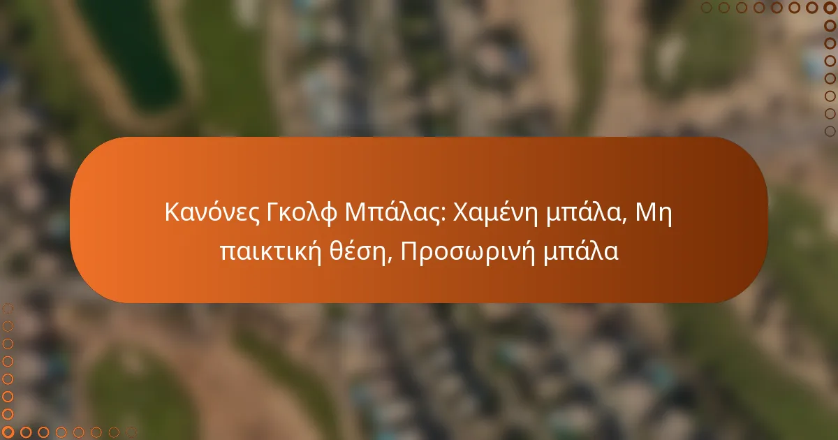 Η κατανόηση των κανόνων που αφορούν τις χαμένες μπάλες, τις μη παικτές θέσεις και τις προσωρινές μπάλες είναι απαραίτητη για κάθε γκολφέρ. Μια χαμένη μπάλα απαιτεί από τον παίκτη να επιστρέψει στην τοποθεσία του προηγούμενου χτυπήματος και να υποστεί ποινή, ενώ μια μη παικτή θέση επιτρέπει στον παίκτη να δηλώσει την μπάλα του μη παικτή και να λάβει συγκεκριμένες ενέργειες. Επιπλέον, η χρήση μιας προσωρινής μπάλας μπορεί να βοηθήσει στη διατήρηση του ρυθμού του παιχνιδιού όταν υπάρχει αβεβαιότητα σχετικά με την τοποθεσία της αρχικής μπάλας.