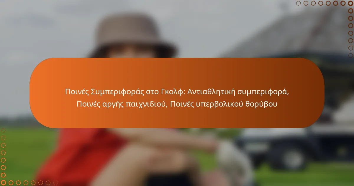 Οι ποινές συμπεριφοράς στο γκολφ περιλαμβάνουν ενέργειες που θεωρούνται αντισυναγωνιστικές, αργή παιγνίδι και υπερβολικό θόρυβο, οι οποίες μπορούν να διαταράξουν το παιχνίδι. Η κατανόηση αυτών των ποινών είναι κρίσιμη για τη διατήρηση της ακεραιότητας και της ροής του παιχνιδιού στο γήπεδο.