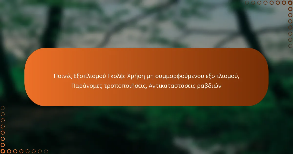 Ποινές Εξοπλισμού Γκολφ: Χρήση μη συμμορφούμενου εξοπλισμού, Παράνομες τροποποιήσεις, Αντικαταστάσεις ραβδιών
