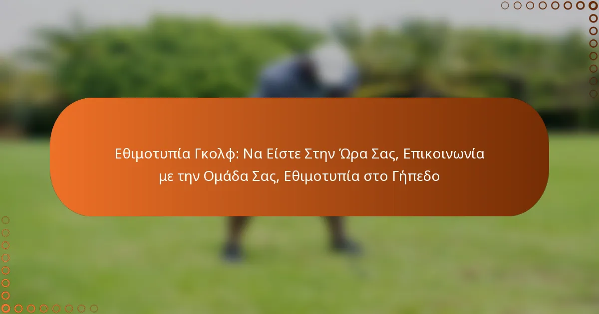 Η εθιμοτυπία του γκολφ είναι ζωτικής σημασίας για να διασφαλιστεί μια ευχάριστη εμπειρία στο γήπεδο, περιλαμβάνοντας την τήρηση του χρόνου, την επικοινωνία και τη σεβαστή συμπεριφορά, ειδικά στο putting green. Η έγκαιρη άφιξη δείχνει σεβασμό προς τους άλλους παίκτες, ενώ η αποτελεσματική επικοινωνία προάγει την ομαδικότητα και τη στρατηγική. Επιπλέον, η τήρηση της εθιμοτυπίας στο putting green, όπως η διατήρηση σιωπής και η αποκατάσταση της επιφάνειας, βοηθά στη δημιουργία μιας συγκεντρωμένης και ευχάριστης ατμόσφαιρας για όλους τους εμπλεκόμενους.
