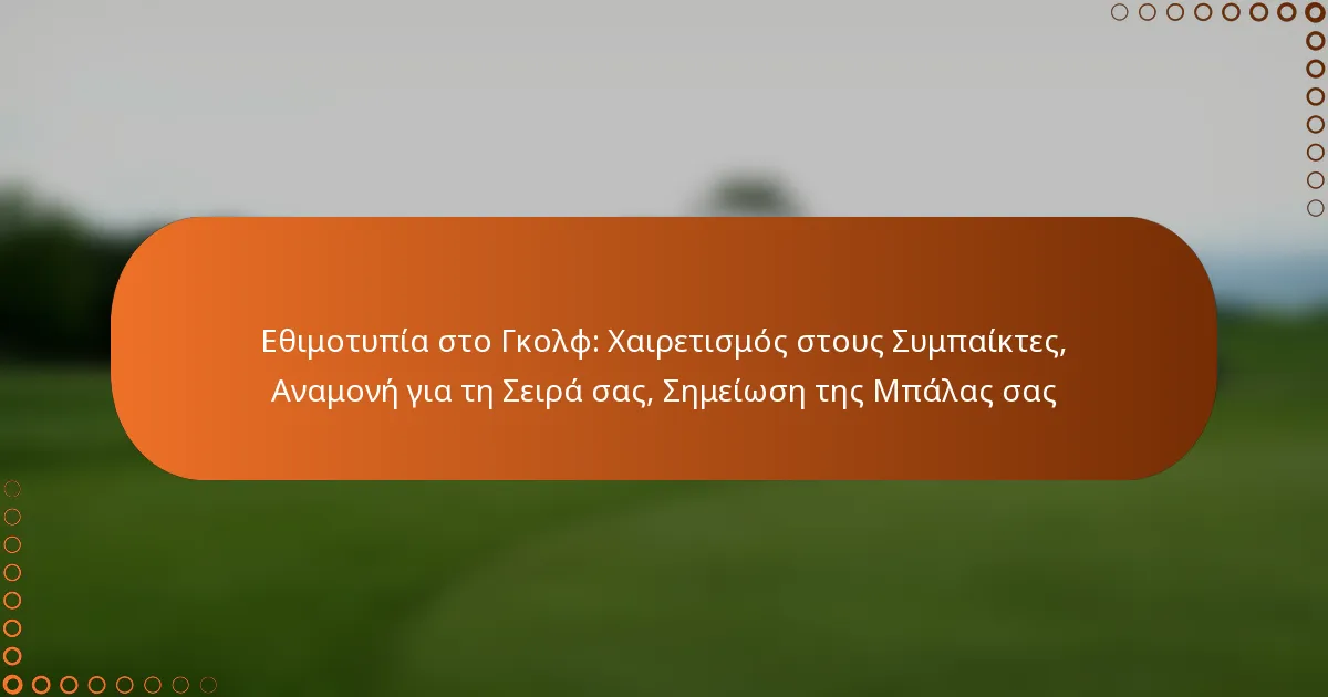 Εθιμοτυπία στο Γκολφ: Χαιρετισμός στους Συμπαίκτες, Αναμονή για τη Σειρά σας, Σημείωση της Μπάλας σας