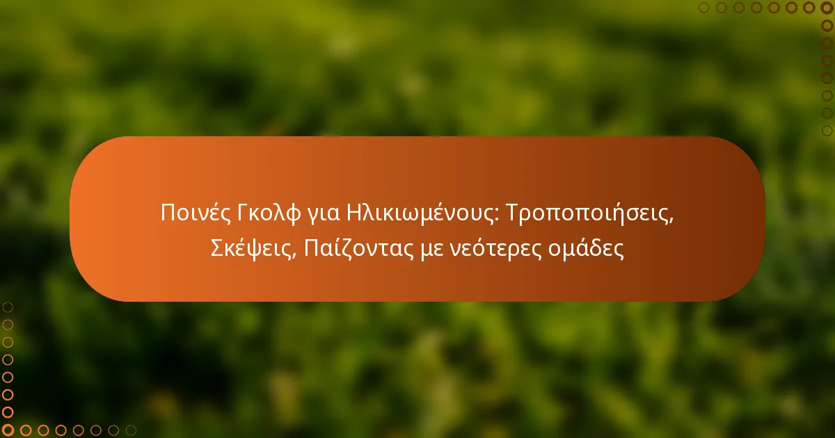 Οι ποινές στο γκολφ για τους ηλικιωμένους συχνά περιλαμβάνουν τροποποιήσεις σχεδιασμένες να καλύψουν τις μοναδικές τους ανάγκες, βελτιώνοντας τη συνολική τους εμπειρία παιχνιδιού. Κατανοώντας αυτές τις προσαρμογές και επικοινωνώντας αποτελεσματικά με τους νεότερους παίκτες, οι ηλικιωμένοι μπορούν να πλοηγηθούν στο παιχνίδι πιο άνετα, διασφαλίζοντας δίκαιο παιχνίδι και προάγοντας μια θετική ατμόσφαιρα στο γήπεδο.